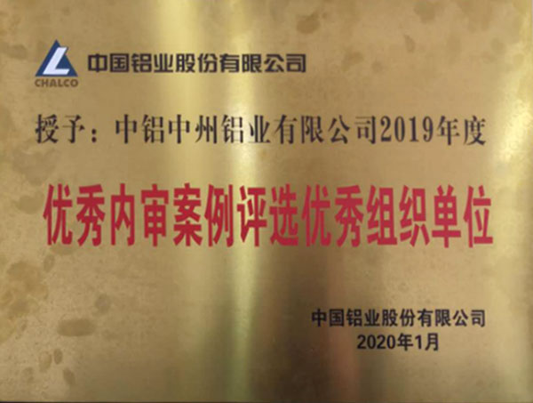 2020年1月协助“中铝中州铝业”赢得中铝2019年度内审案例评选优 秀组织单位”奖。